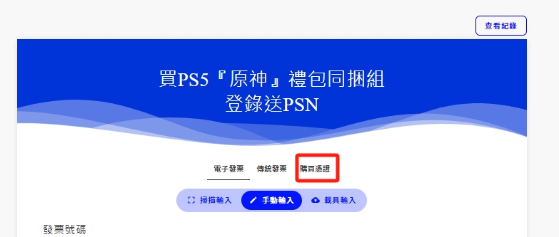 A4 :若有同一張發票需登記2台以上的主機,請選擇【購買憑證】的方式輸入
