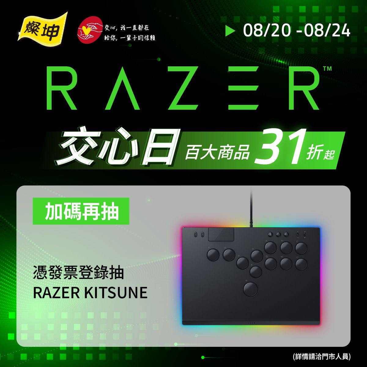 1. 凡購買Razer全系列商品,登錄發票即可抽「RAZER KITSUNE 電競格鬥搖桿」乙支 (市價新台幣9,900元, 共2名)
