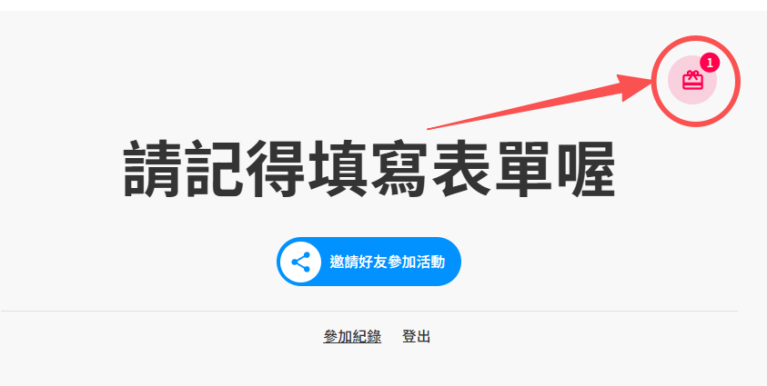 A: 請回到活動畫面,重新登錄後即可進入填寫。但若藍色框起處顯示為【未通過】時請來信通知我們。